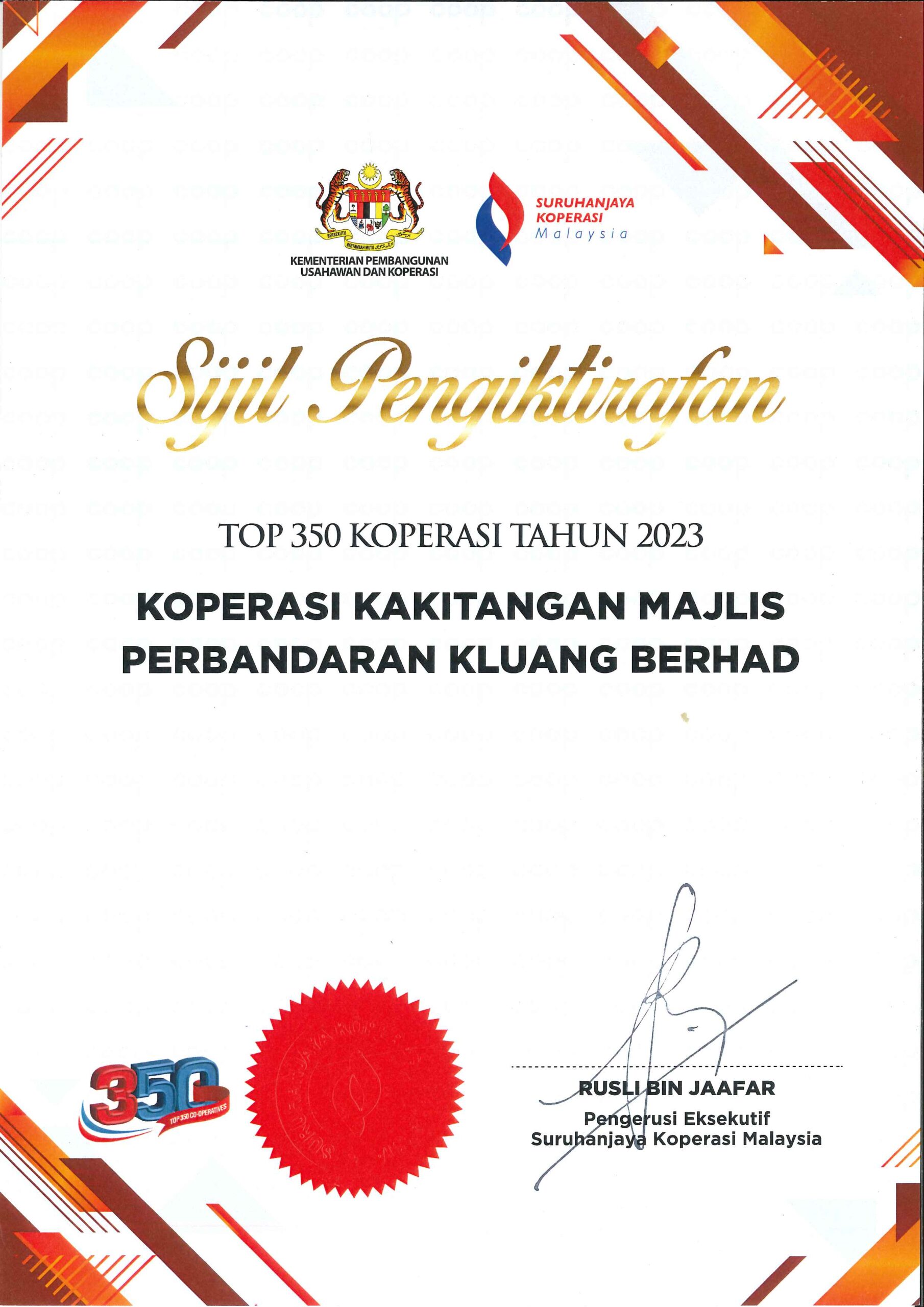 TOP 350 KOPERASI BAGI TAHUN 2024